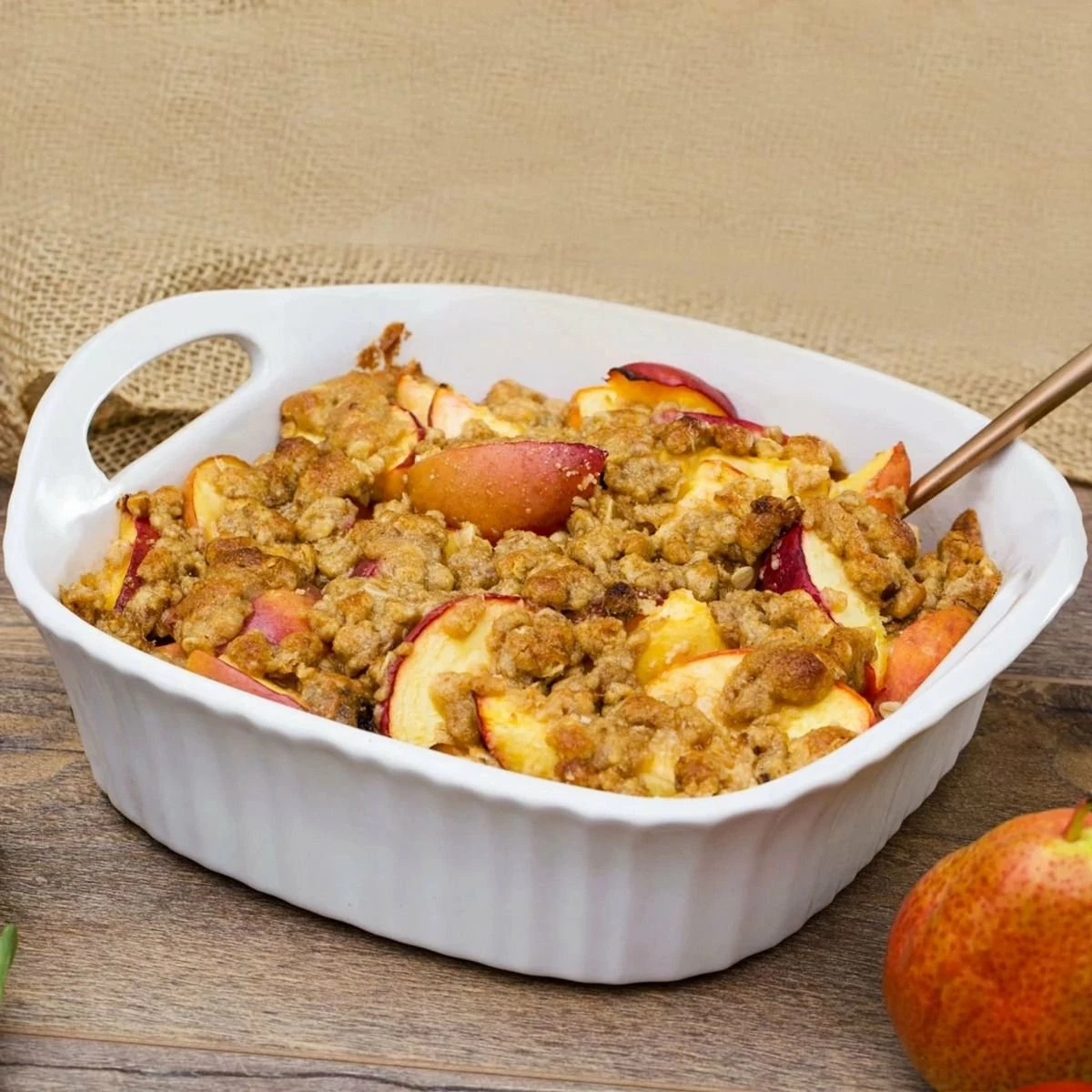 - Durable stoneware for even heating
