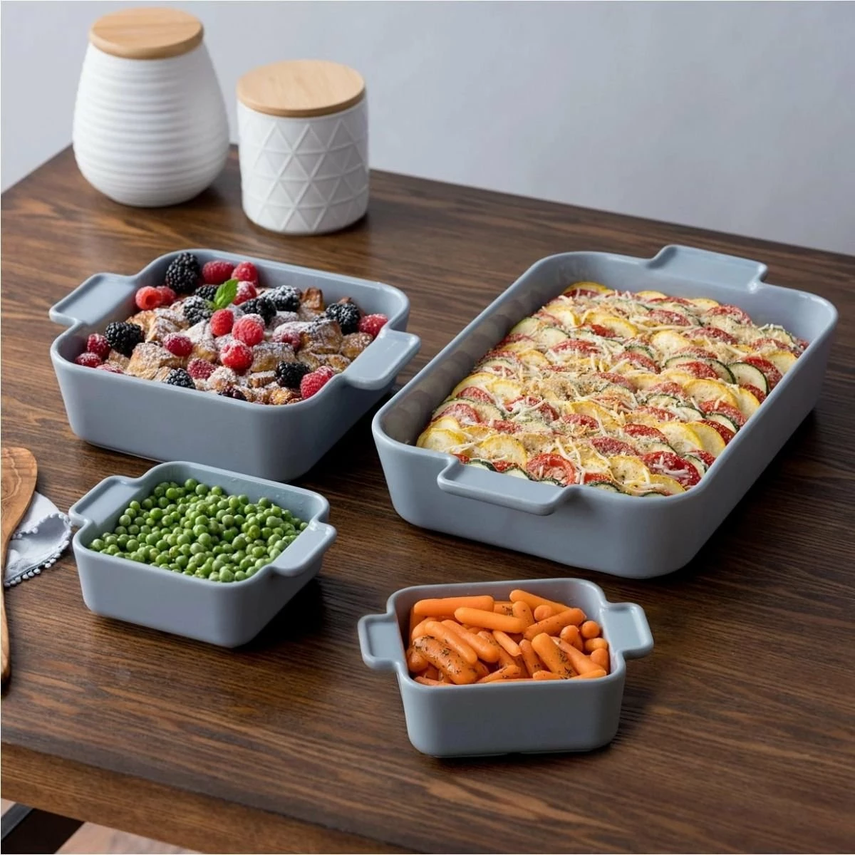 CorningWare Modern Stoneware 4-Piece Baking Dish Set – Ash Features:
