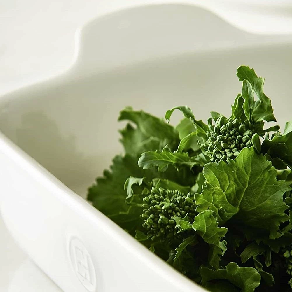 Bake up your famous fiesta chicken casserole, a side of potatoes au gratin, decadent fudge brownies and more with the Sugar Individual Rectangular Baker from Emile Henry! Made of quality high-fired ceramic with a sophisticated, timeless white color, this dish is as perfect for serving as it is for baking. It’s perfect for smaller side dishes or individually-sized meals. The ceramic distributes heat evenly, resulting in reliably delicious dishes you can serve up with pride at meals with the family or when hosting a dinner party. This dish can handle the heat of the oven and microwave when baking or reheating, the chill or the fridge or freezer when storing and is also dishwasher-safe for easy cleanup.