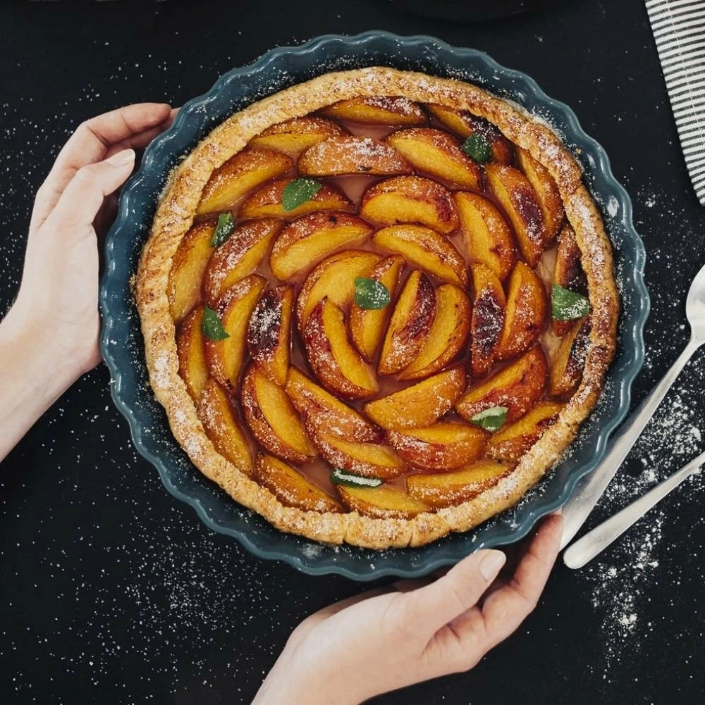 From a fresh summer fruit tart to a savory Mediterranean frittata, the Emile Henry 9″ Deep Tart Dish in Mediterranean Blue will help you bake & elegantly serve your favorite homemade recipes with ease! Crafted of all-natural Burgundy clay from France, this dish undergoes an exclusive firing process that gives it incredible heat retention for achieving a perfect golden crust & evenly cooked results with each bake. It’s finished with a durable glaze that’s resistant to chipping, fading, & scratching, allowing you to cut & serve right from the dish without the worry of scratching the surface. The tall sides make it ideal for more than just tarts – it’s also great for quiches, frittatas, fruit pizzas, tortes, pies, & more! Plus, it’s shock-resistant allowing this dish to safely go from the freezer to the oven to the table for a beautiful presentation. Create stunning bakery-quality dishes for dinner parties, potlucks, & more with the Emile Henry Deep Tart Dish today!