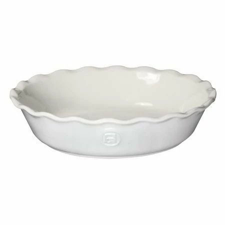 The Emile Henry Sugar White pie dish has a natural exterior color and chip-resistant glaze that not only makes a beautiful presentation but keeps the pie warm. This amazing pie dish bakes crust that melts in your mouth with consistent results every time. These unique pie dishes are made with natural Burgundy clay in Marcigny France and designed by Jacques Henry, of Emile Henry, whose design brings a French perspective to this American dessert. Burgundy clay is unsurpassed for conducting and retaining heat allowing even baking directly from the center of the pie dish. These brilliant pie dishes feature scalloped edges, much like the edge created when pie dough is fluted. This idea was inspired by a turn-of-the-century shape that Jacques Henry observed in an old photograph on the mantle of his family home. Emile Henry pie dishes are highly resistant to chipping and can be used directly from your freezer to your oven.