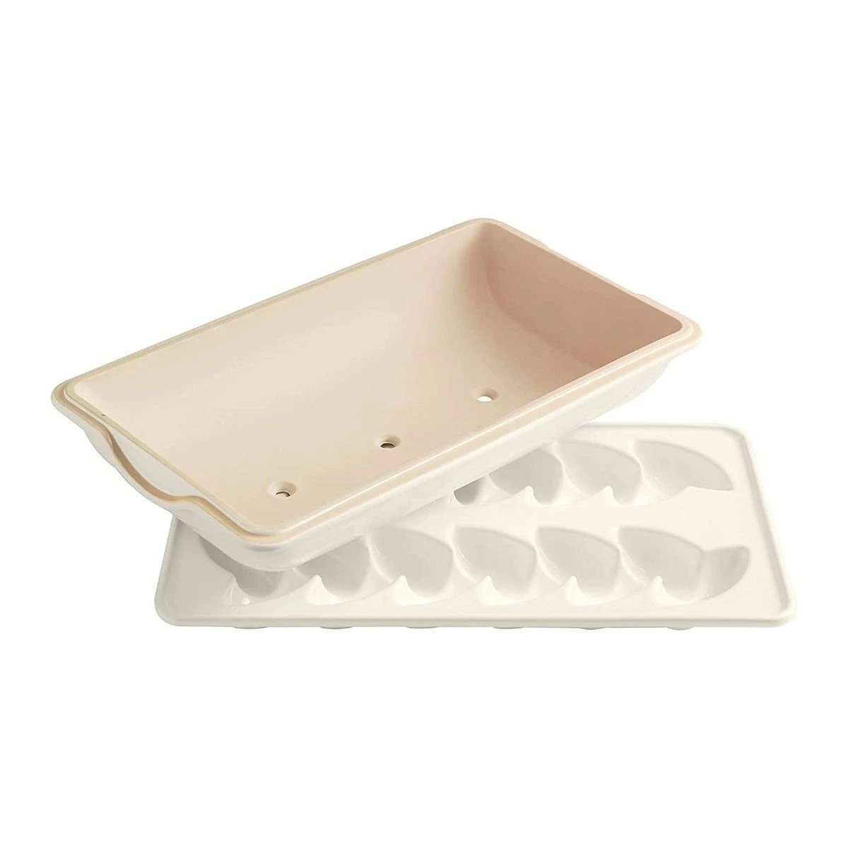 Pain d’epi is simply “wheat stalk bread” as it resembles stalks of wheat, and Emile Henry allows you to make it with the Epi Bread Wheat Stalk Baguette Baker in Linen! Made from high-quality ceramic stoneware with high shock resistance, this bread baker allows you to bake two epi loaves in wheat stalk-shaped cavities. The domed lid helps shape the right level of humidity throughout the baking process to get the perfect loaf: a crispy, crunchy exterior with a soft, fluffy interior! And don’t forget that it is heat resistant up to 500°F, which is ideal for all types of bread at different temperatures. Guaranteed to last the ages and backed by a 10-year warranty, the Emile Henry Epi Bread Wheat Stalk Baguette Baker in Linen will take your bread baking to a whole new level!