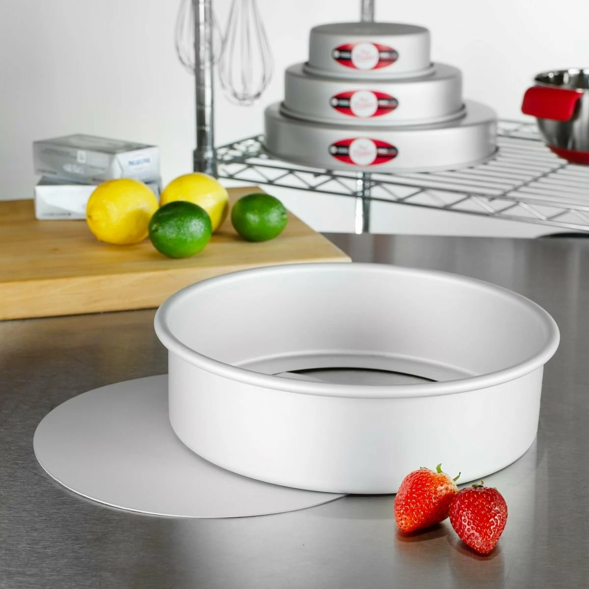 The perfect cheesecake is just a pan away! Fat Daddio’s Removable Bottom 10” by 3” Removable Bottom Round Cheesecake Pan is the perfect kitchen helper when the mood strikes for a delectable cheesecake. While this pan was designed for cheesecake it is also perfect for upside down cakes, tiramisu and frozen desserts. When your culinary creation is complete, simply push from the bottom to remove from the pan! Don’t struggle with delicate desserts any longer with Fat Daddio’s Removable Bottom Removable Bottom Round Cheesecake Pan!