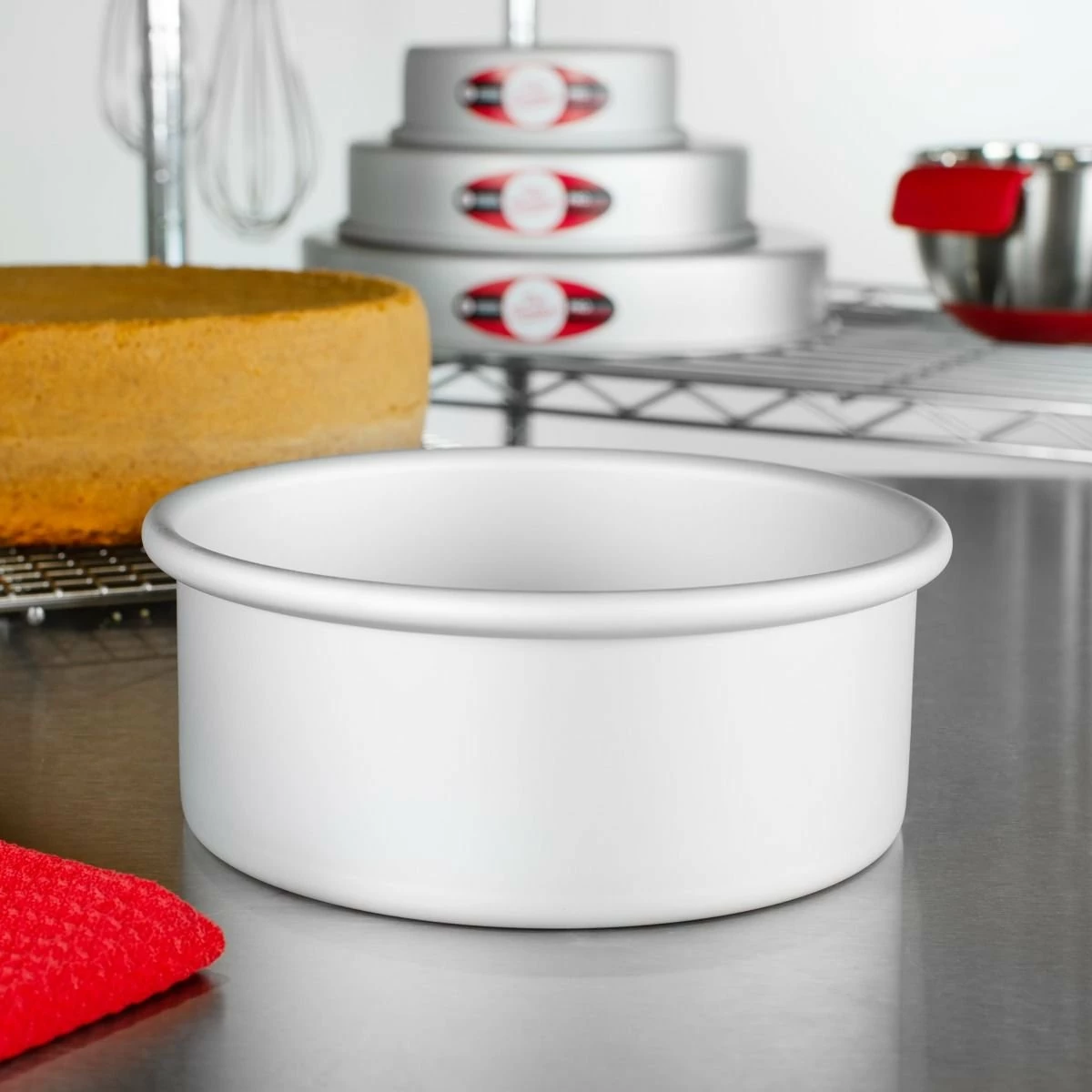 The Fat Daddio’s Round Cake Pans are a great way to celebrate any occasion. This product is part of a collection of varying sizes, which means each pan can stack within another for a cute gift idea.