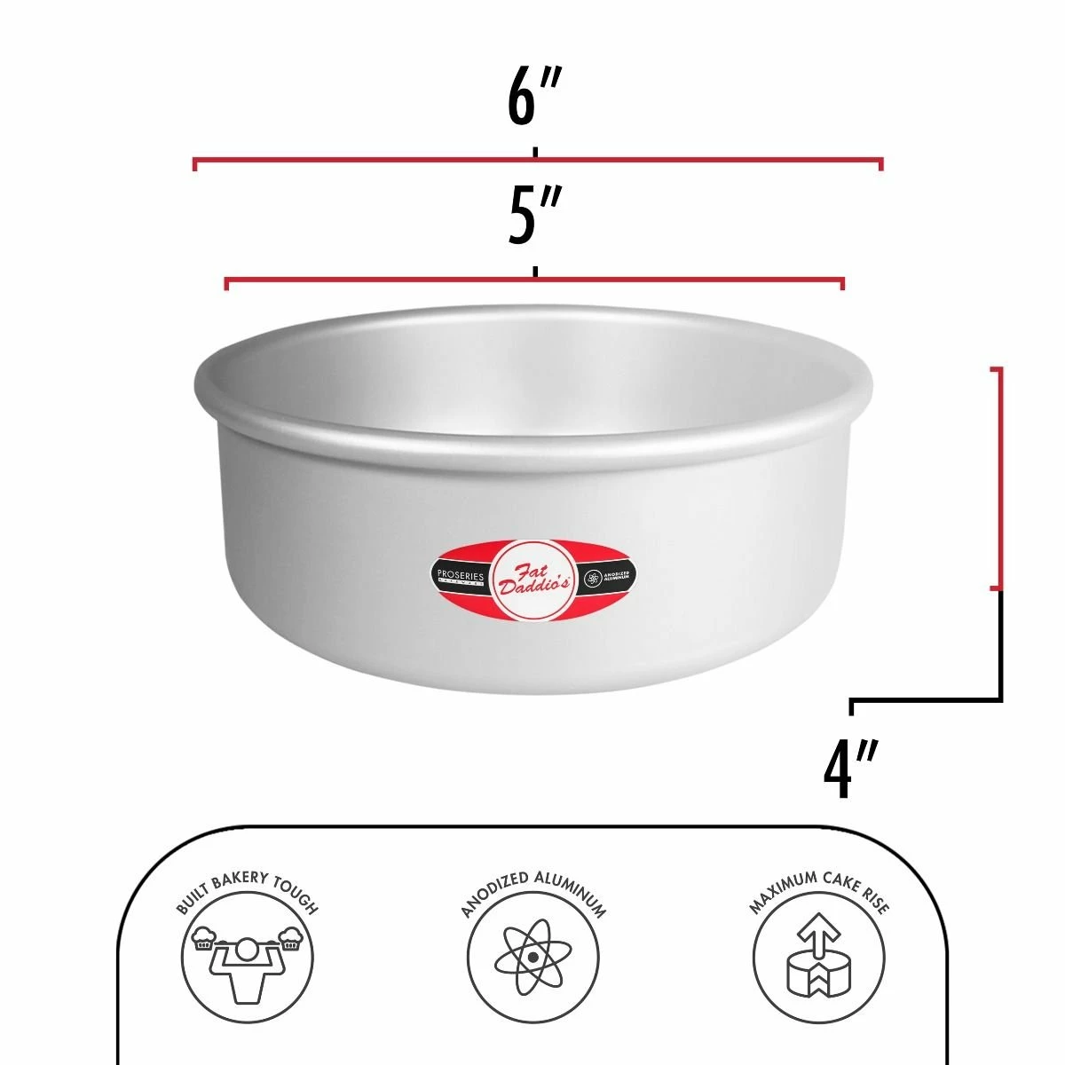 Fat Daddio’s Round Cake Pan (5”x4”) with Solid Bottom Features: