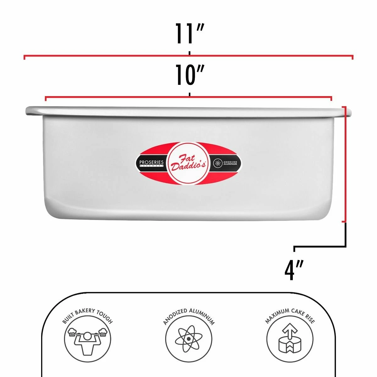 Make the perfect cake every time with Fat Daddio’s anodized aluminum Square Cake Pan. Anodized aluminum ensures that your cakes will bake evenly, release easily and cool quickly. Whether you are making a single cake or stacking to make a tiered cake, the seamless and straight-sides of this pan provide perfect sides. Even though the anodized aluminum is a smoother surface, it is still recommended to grease the pan. Fat Daddio’s is the leader in pans from small to big for home or commercial use.