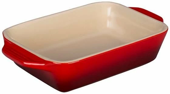 - LeCreuset 9″ X 13″ Stoneware Baker in Cherry Red