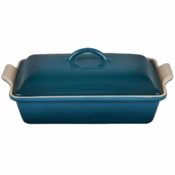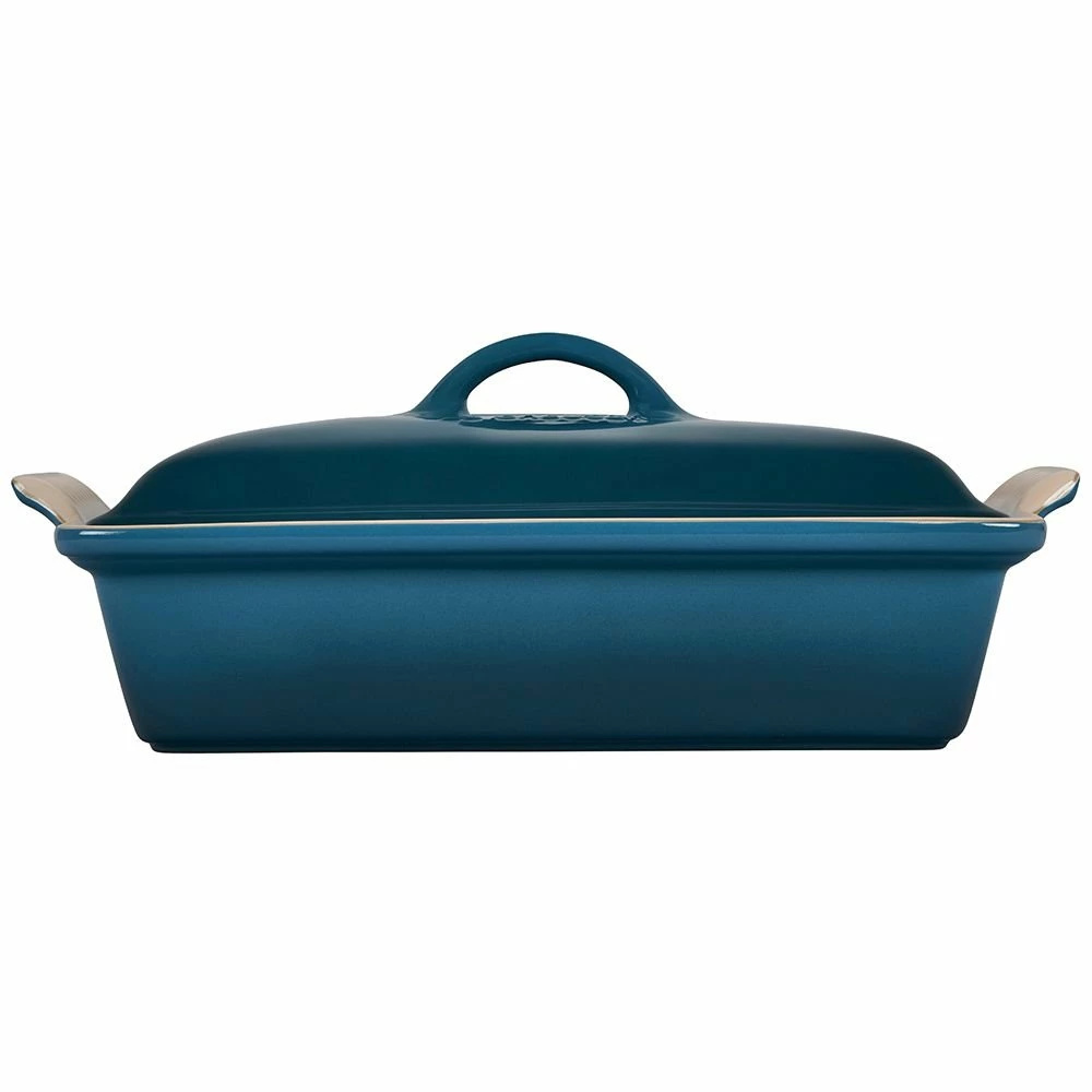 Le Creuset 4qt Heritage Covered Rectangular Casserole Dish (Deep Teal) Features: