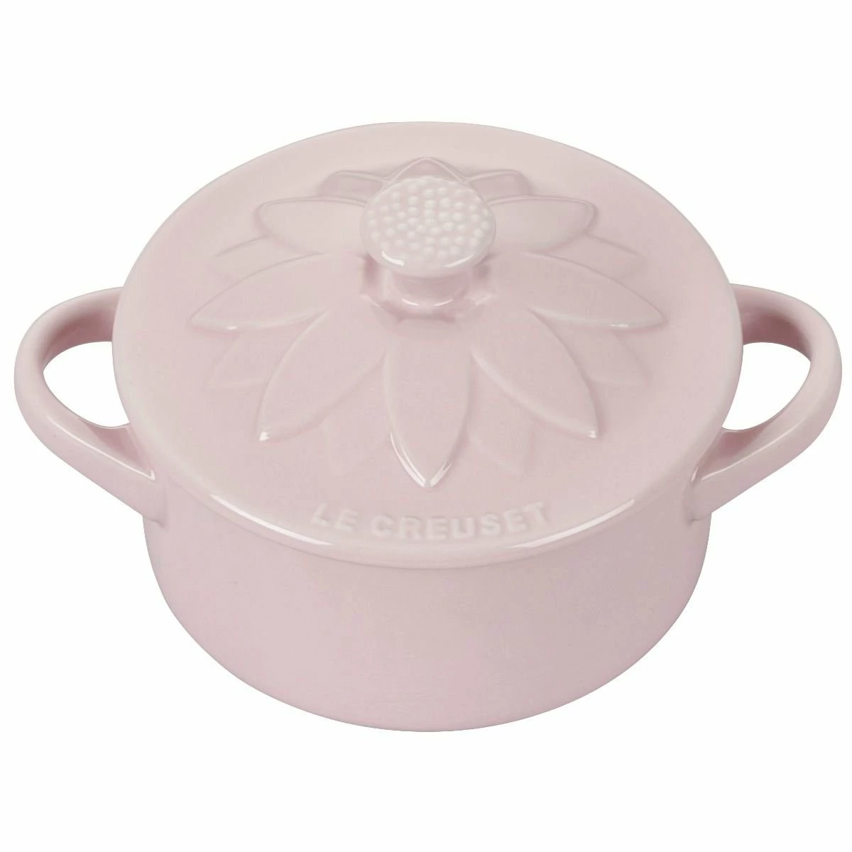 Le Creuset 8oz. Mini Round Cocotte with Flower Lid (Chiffon Pink) Features: