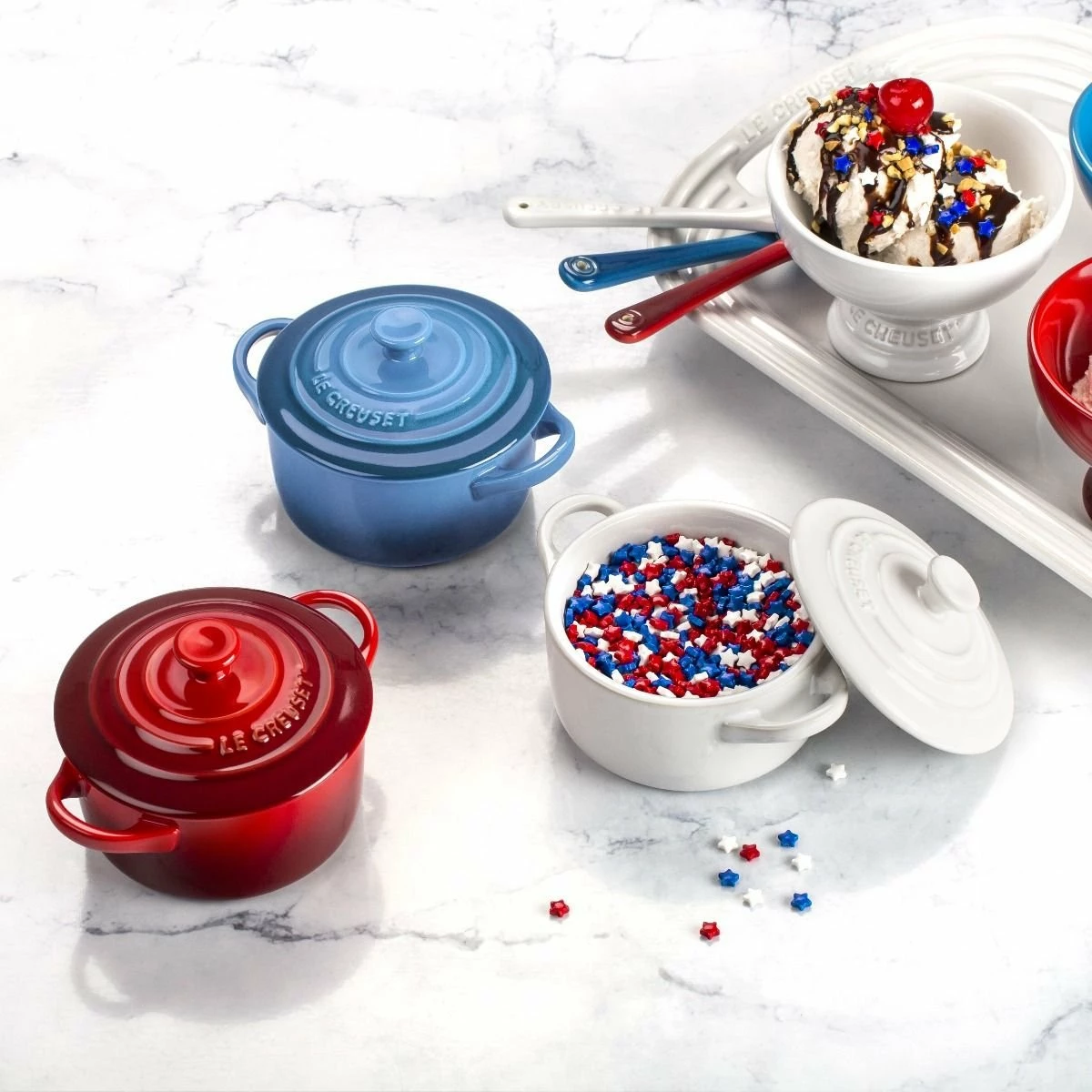 Le Creuset 8 Ounce Mini Round Cocotte (White) Features: