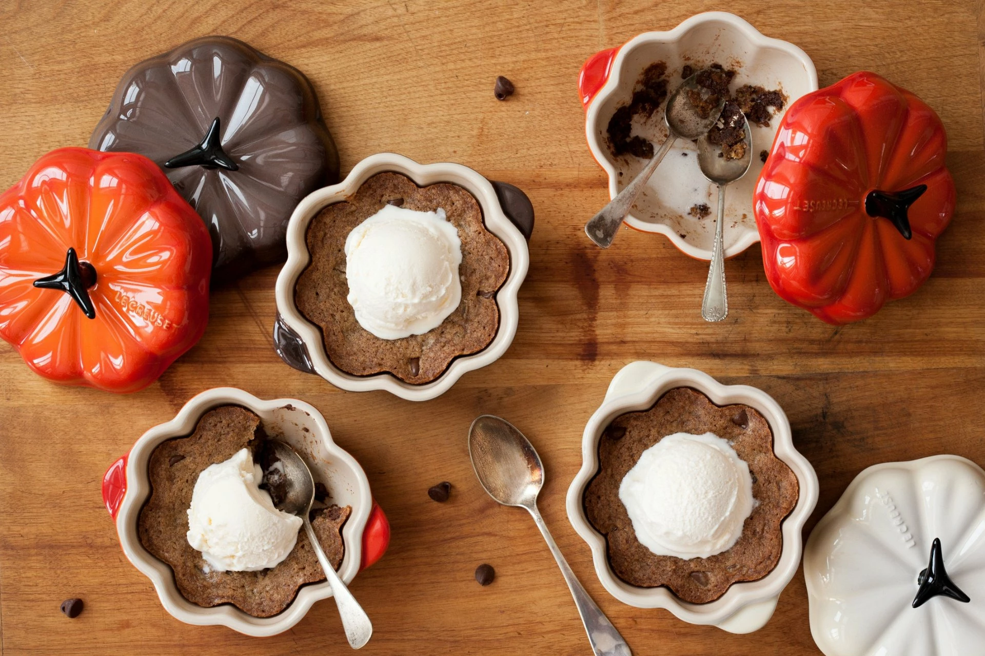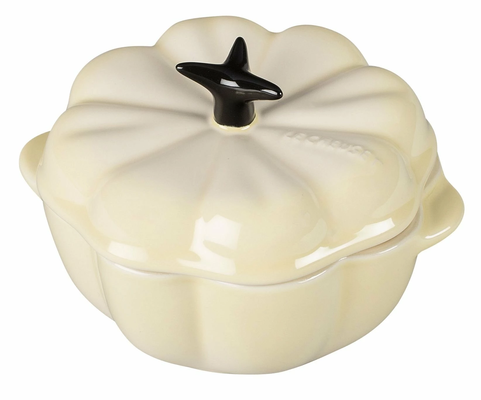 Serve up your favorite fall recipes or spooky Halloween treats in the Petite Pumpkin Cocotte in Meringue from Le Creuset. This stoneware cocotte has a 10oz capacity, perfect for small, customized desserts, everything from brownies to pies in a miniature form. Designed in the shape of a small pumpkin with a black stem that doubles as a handle, this cocotte is a perfect blend of form and function. Delight your guests and set a memorable table with the Petite Pumpkin Cocotte in Meringue from Le Creuset today!