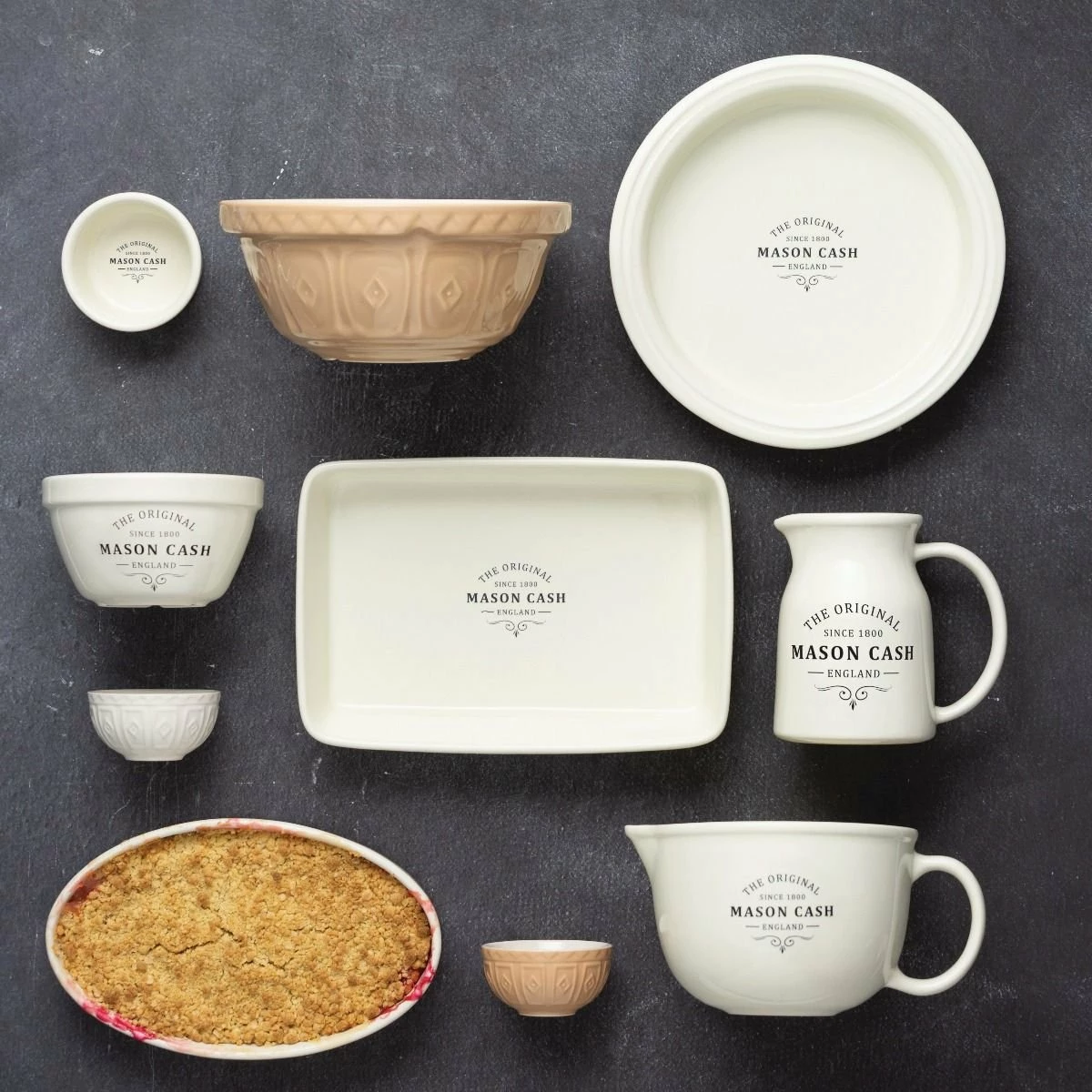 Apple, Cherry, Pumpkin, or Pecan pies await, all while adding a classic, yet stylish, element to your kitchen counters with the Mason Cash 11″ Pie Dish. The dish presents itself in a warm cream color and is adorned with iconic Mason Cash labeling, bringing the heritage of Mason Cash’s ceramic history into the present. Made from stoneware, the pie dish is dishwasher, microwave, freezer, and conventional oven safe, making it ideal for everyday use. The dish has a 47.3 oz capacity and measures 1.9″ high and 11″ in diameter. Inspired by the early 20th century kitchens and sculleries of Great Britain, Mason Cash’s Heritage Collection will provide your modern home a vintage touch for years to come.