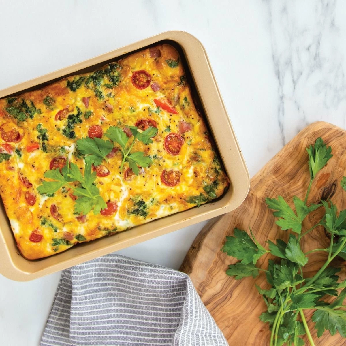 Cook and bake your favorite meals or frozen foods in your toaster oven with the Nordic Ware 1.5-Quart Casserole Pan! Sized for easy storage and smaller portions, this durable aluminized steel casserole pan also can be used in your conventional oven. PFOA-free nonstick surface makes for easy cleanup – another plus when cooking in cozy spaces. Perfect for making individual portions or reheating leftovers. Proudly made in the USA.