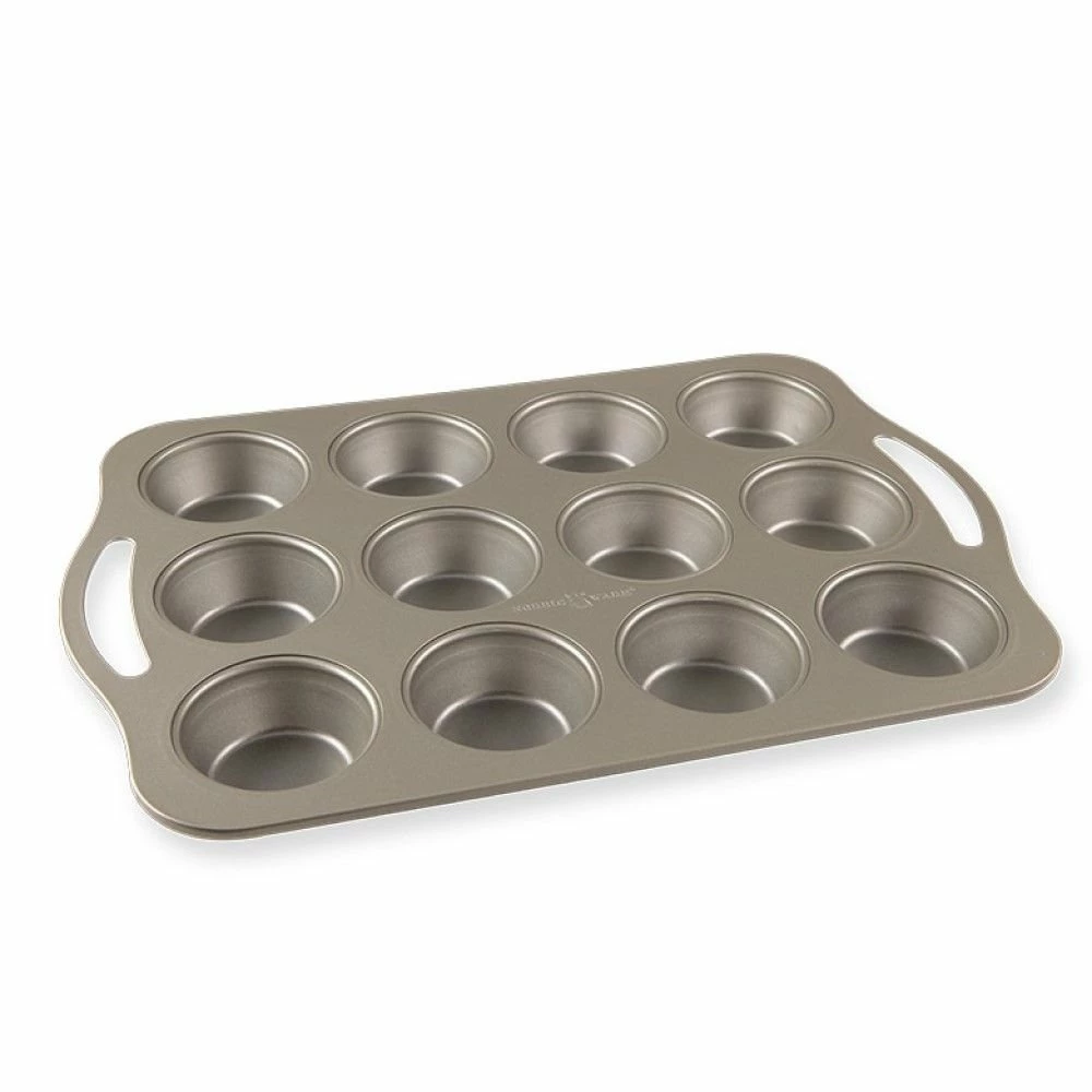 A quality muffin and cupcake pan is an essential part of any well-outfitted kitchen. Treat™ bakeware features a PFOA-free nonstick surface for easy release and quick cleanup. Its light champagne color lends a sophisticated touch while ensuring baked goods don’t over-brown in the oven as they can with darker finishes. An easy-to-grab open handle design gives you a solid grasp as you handle the pan into and out of the oven.