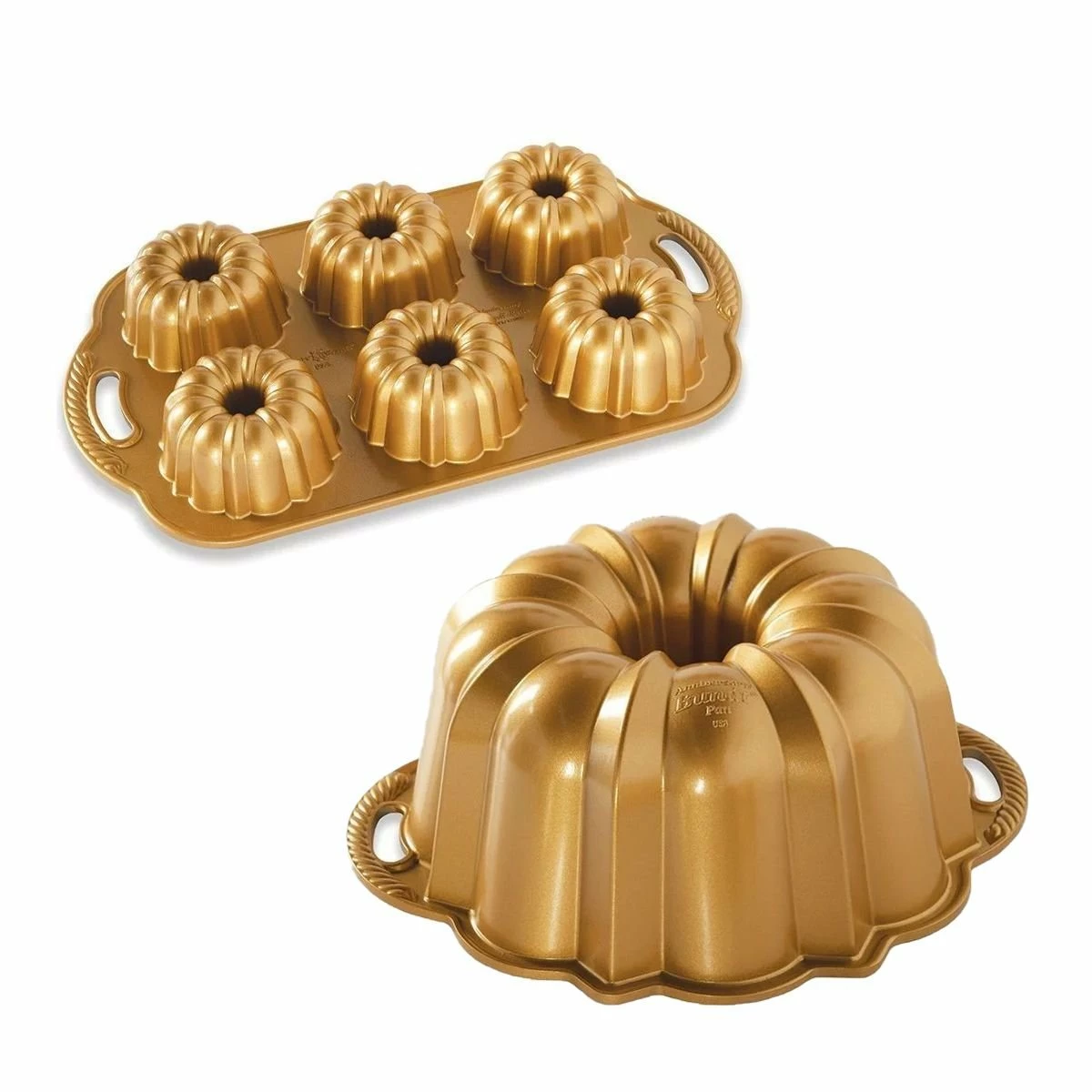 Nordic Ware Anniversary Gold Bundt Pan Set Features: