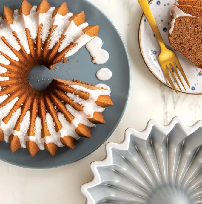 Looking for professional-quality bakeware that’ll last a lifetime? Start with baking a show-stopping bundt cake in Nordic Ware’s Brilliance Bundt Pan, designed and engineered to provide creative home bakers with gourmet-bakery results. This Nordic Ware Bundt pan is constructed of heavy-duty, commercial-grade aluminum that glows with an attractive gold finish. Made in America and with a lifetime warranty, you’ll love how your cake releases easily and turns out perfectly! When you want a durable, heavy-duty pan that can handle a lifetime of cakes, add the Nordic Ware Cast Aluminum Brilliance Bundt Pan to your bakeware collection.