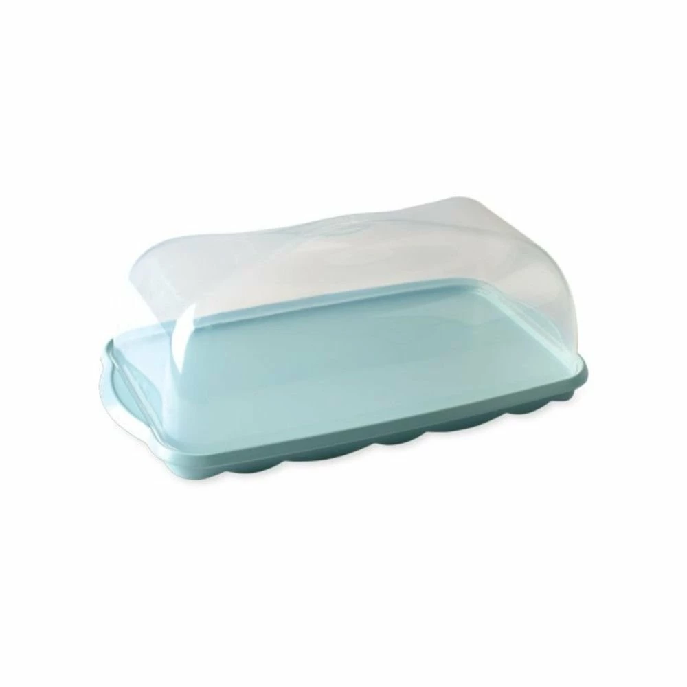 The Nordic Ware Baker’s Basics Loaf Cake Keeper 50050 is a sturdy and pretty loaf holder that features a clear, locking dome lid so your loaf cake, bread or even meat loaf can be admired and protected when you take it to a special occasion or display it on your counter. The light blue base with the decorative scalloped rim is made of durable BPA- and melamine-free plastic; the clear plastic dome locks to the base with a simple, quick twist. At a generous 12.8”L x 7.3”W x 4.6”H, this loaf pan can accommodate large bread and meat loafs, as well as mini cakelets, brownies, cupcakes, hors-d’oeuvres and more; and this versatile keeper cleans up quickly with a simple hand-washing. Nordic Ware makes all of its products here in the U.S.A., and backs its loaf cake keeper with a 5-year warranty. The next time you make a beautiful loaf cake, a pillowy loaf of bread, or a savory meat loaf, serve and store it in the keeper specifically designed to exhibit your edible artwork and keep it fresh, the lovely Nordic Ware Baker’s Basics Loaf Cake Keeper.
