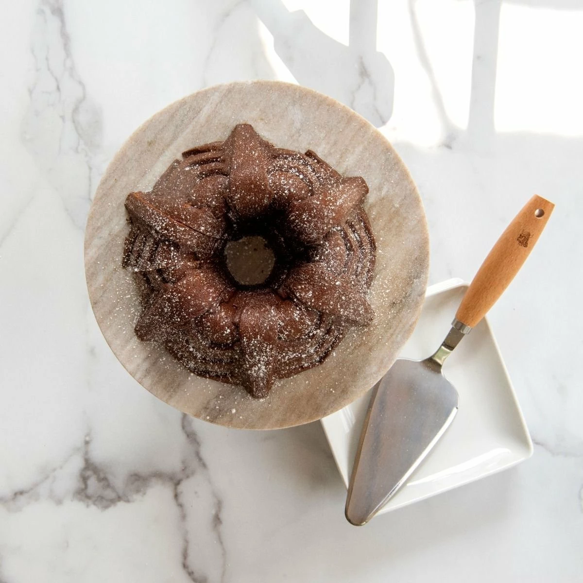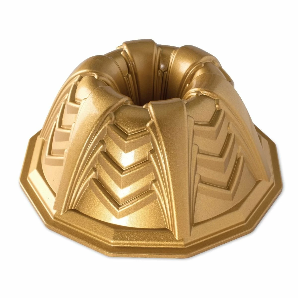 Create an edible centerpiece with Art Deco inspiration using the Nordic Ware Marquee Bundt Pan! Made from cast aluminum, this bundt pan offers even heat distribution for evenly baked cakes and a nonstick finish for easy removal – allowing you to pull beautifully decorated cakes directly from your oven with ease. The sharp geometric lines of the pan results in ornate decorations on your cakes that require only a simple dusting of powdered sugar or a drizzle of glaze to be perfectly presentable. Put a spin on your favorite bundt cake recipe by baking with the Nordic Ware Marquee Bundt Pan!