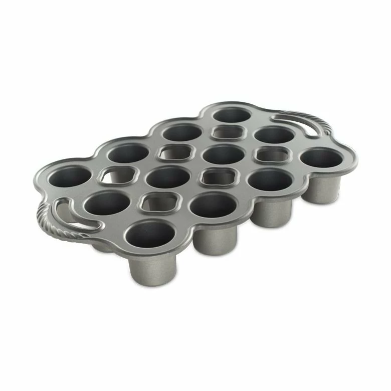Warm and buttery mini popover muffins are a wonderful and yummy American tradition. The Nordic Ware Mini Popover Pan makes 12 mini popovers and can be used to make other bite sized pasties and appetizers. The aluminum structure of the Nordic Ware Mini Popover Pan evenly bakes your popovers or muffins. The non-stick interior helps your popovers come out of the pan easily, holding their unique shape. It is advised that you hand wash your Nordic Ware Mini Popover pan and do not use metal utensils on it to insure that your Nordic Bakeware will last a lifetime.