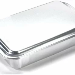 Protect your cake or other baked goods. Whether you are traveling to a potluck or family reunion or just wanting your baked goods to stay fresh longer at home the Nordic Ware Covered Cake Pan will hold up to the challenge. The Nordic Ware cake pan is made of quality aluminum with a steel reinforced rim for strength and durability. This cake pan will bake a 9 x 13 cake but can also be used for other baking such as brownies, bread, lasagna and more!