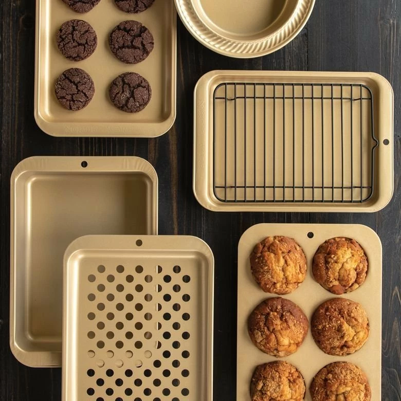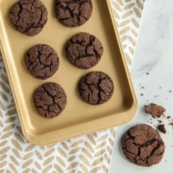 Anything is healthy in moderation, so bake up a small batch of your favorite treat with the Nordic Ware Nonstick Baking Sheet! This 8.5″ x 6.5″ baking sheet features a nonstick surface and can fit in a conventional or countertop oven with equal ease. Made in the USA, this baking sheet is made of aluminized steel, a durable alloy that has the strength of steel with the corrosion resistance of aluminum. These features create a durable baking sheet that can deliver a wide variety of treats to you, from roasted tomatoes to chocolate chip cookies. Make yourself perfectly portioned treats with ease using the Nordic Ware Nonstick Baking Sheet, get yours today!