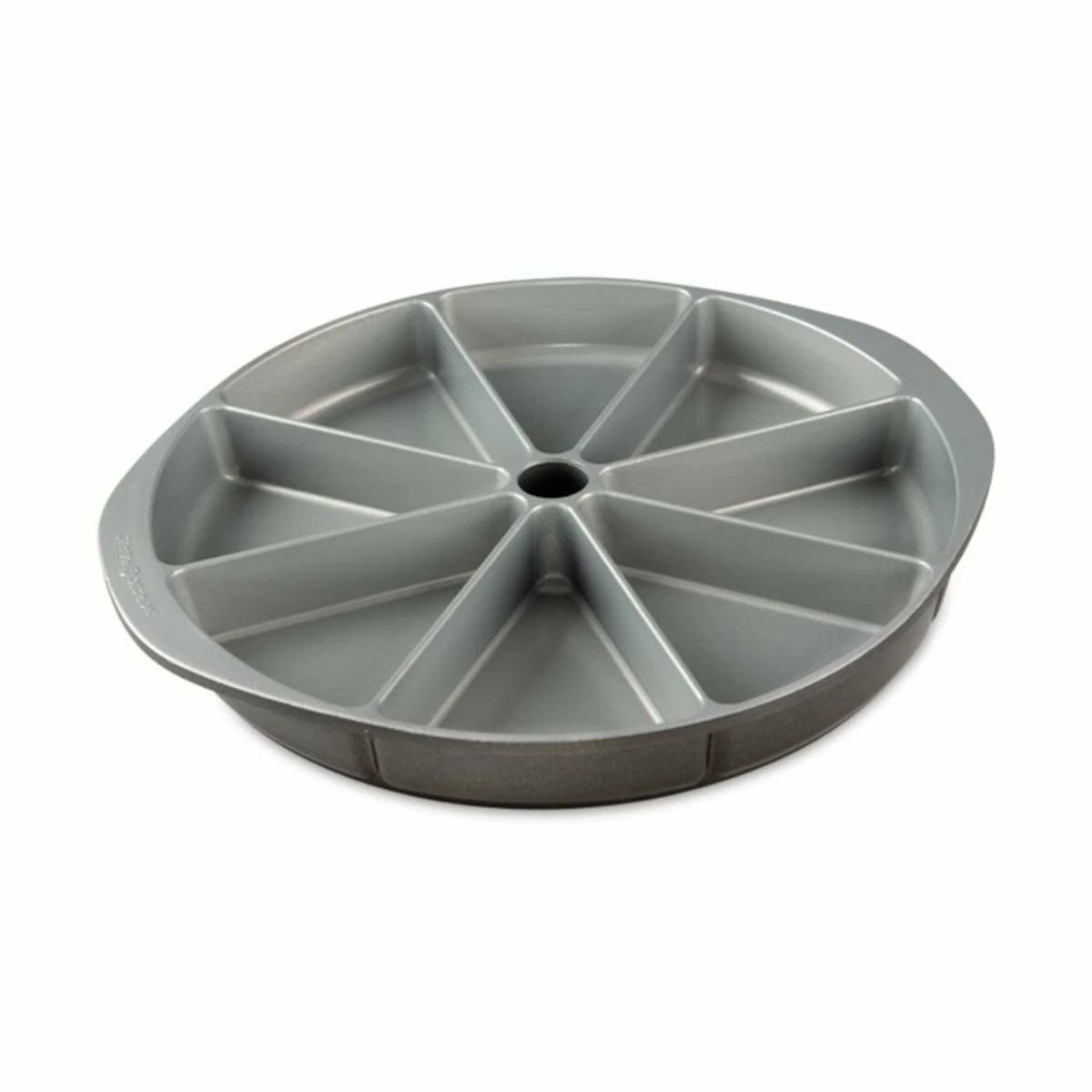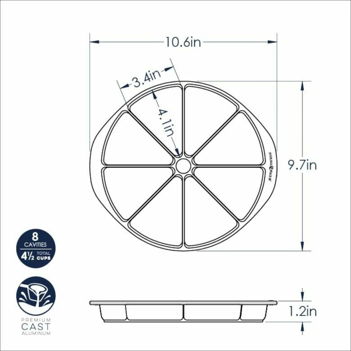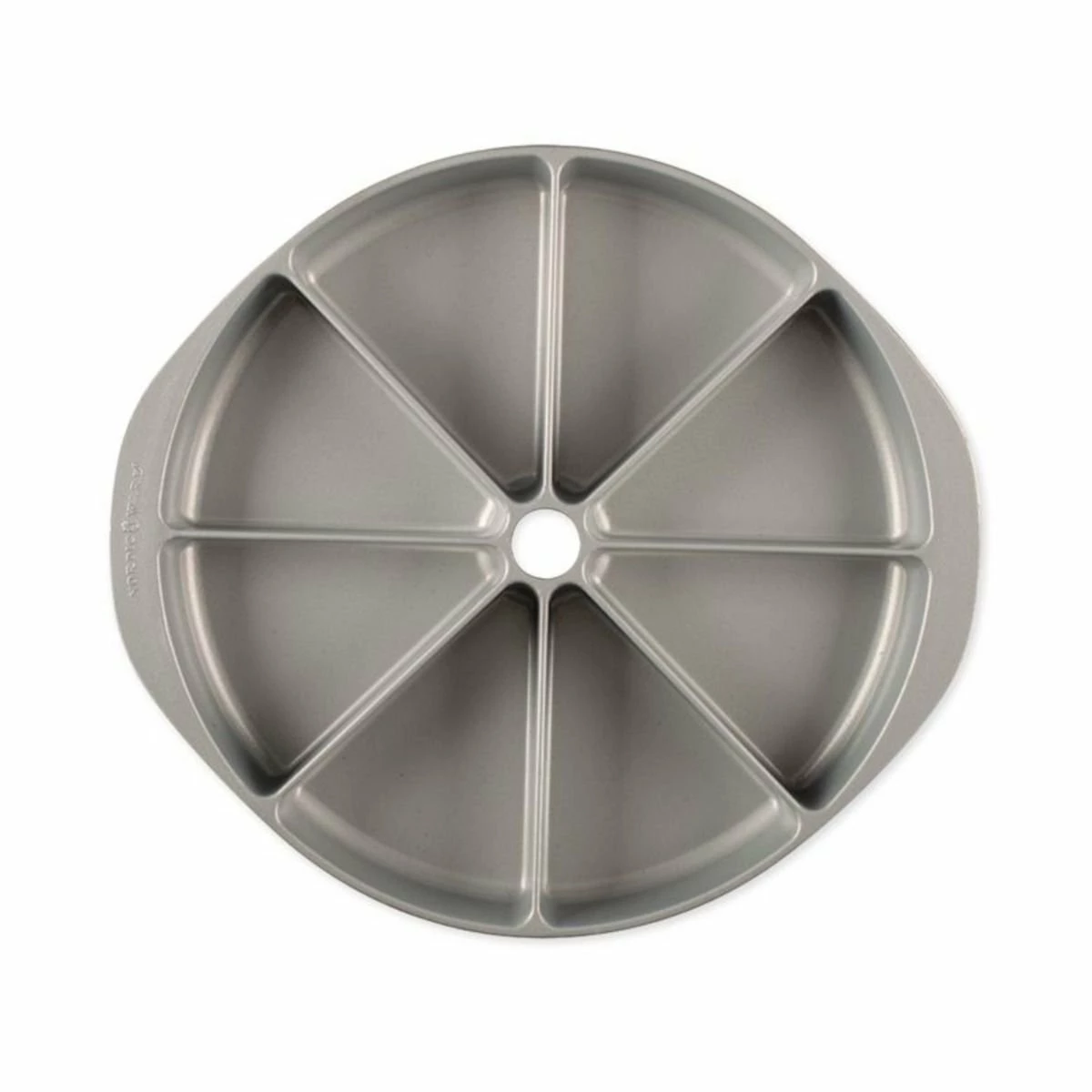 Nordic Ware pastry bakeware helps you to bake up tasty pastries in no time. The Nordic Ware Scone Pan has 8 wedge shaped slots that are great for making more than just scones but also cornbread, biscuits, mini cakes and more! The cast aluminum scone pan distributed heat evenly giving you beautifully baked pastries. The non-stick surface of the Nordic Ware Scone Pan allows your cornbread or pastries to easily come out of the scone pan slots minimizing damages to the classic wedge scone shape.