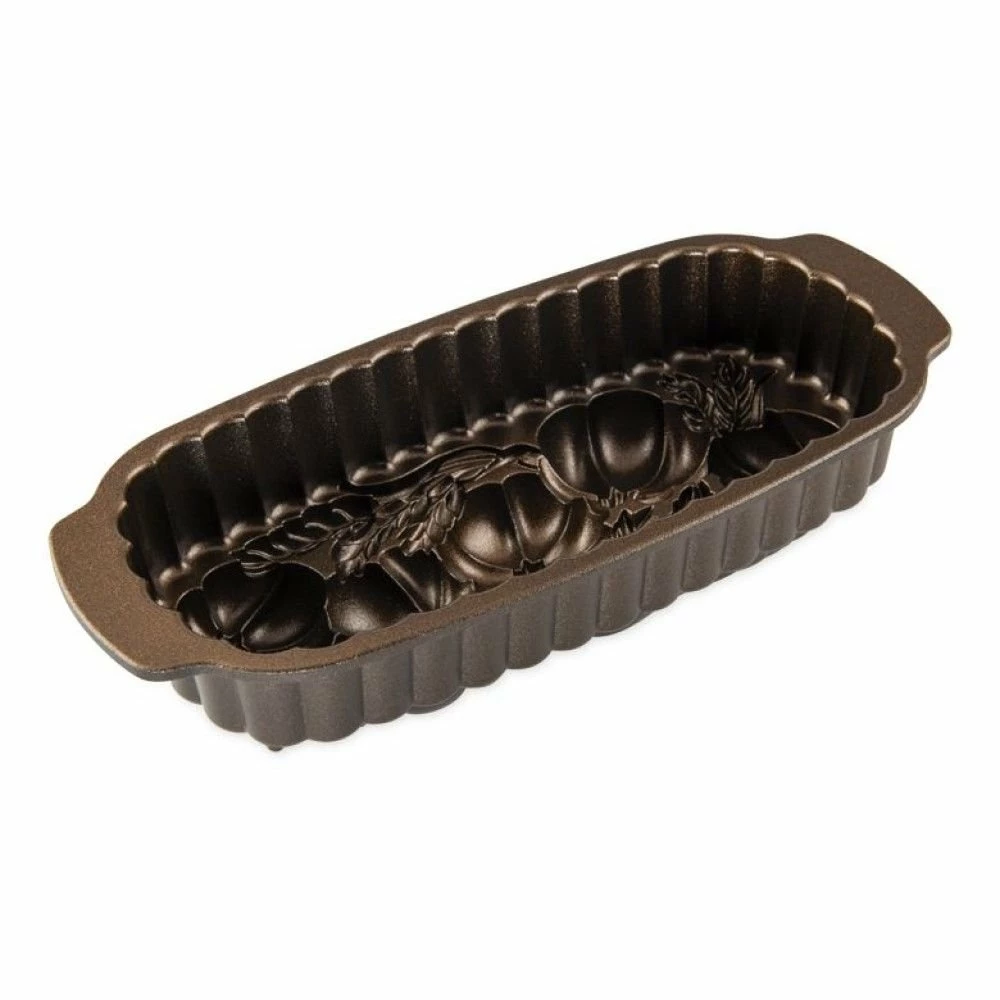 - Includes a Citrus Blossom Loaf Pan, Apple Basket Loaf Pan, Wheat & Pumpkin Loaf Pan, & Santa’s Sleigh Loaf Pan