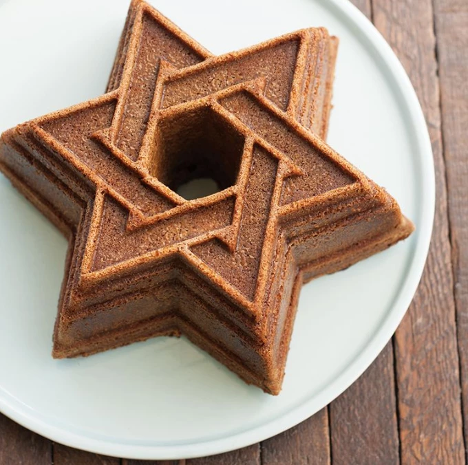 Celebrate you or your friends Jewish Heritage with the Nordic Ware Star of David Cake Pan. The Nordic Ware Star of Daivd Cake Pan is constructed of durable aluminum for even baking and has a non stick coating so that your perfect Star of David cake will come out easily. The great thing about this Nordic Ware Star of David cake pan is the fine detail that goes into the star design . Get a picture perfect Star of David cake every time with the Nordic Ware Star of David Cake pan.