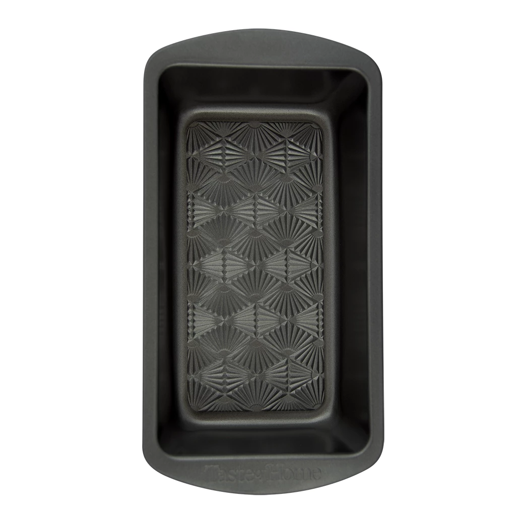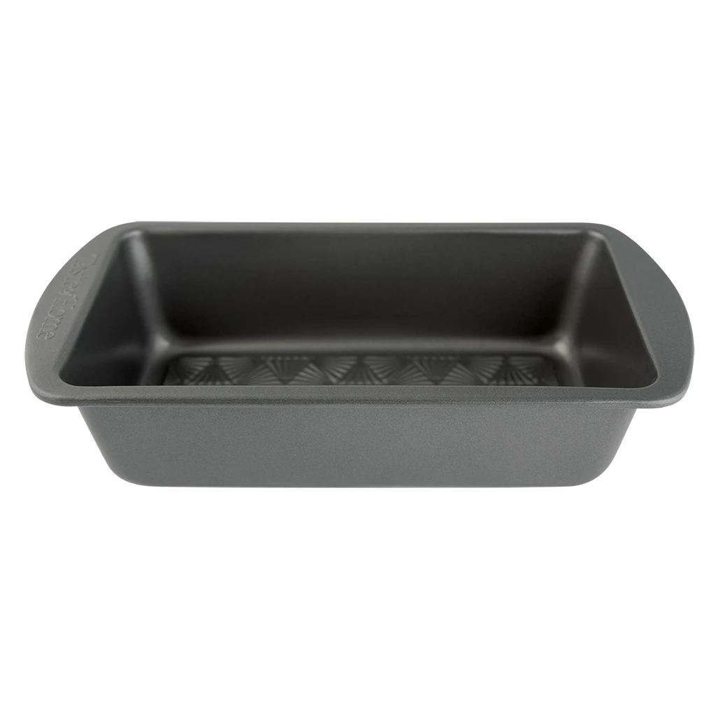 Whip up a deliciously savory meatloaf, fluffy banana bread, or a delicate terrine with the Range Kleen Taste of Home 9″ x 5″ Loaf Pan! This loaf pan is constructed of durable steel with a PTFE-free nonstick coating that cleanly releases your baked goods without tearing them. The intricate embossed design at the bottom of the pan not only strengthens the integrity of the pan but also allows airflow for quick and even heat distribution. Handles on each side allow you to transport your loaf with ease. This pan is dishwasher-safe, but hand-washing is recommended to increase longevity. Whether you’re making sandwich bread, fruitcake, zucchini bread, or a small lasagna, bake it to perfection in the Range Kleen Taste of Home 9″ x 5″ Loaf Pan!