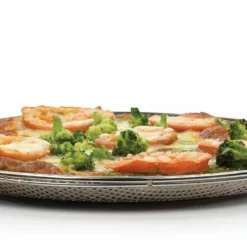Make delicious grill cooked pizza with the RSVP Endurance Precision Steel Pizza Pan. This pan provides large handles for easy removal and the pierced pan design promotes airflow while baking a fresh homemade pizza on your outdoor grill. The RSVP Endurance Steel Pizza Pan measures 11.25 inches by 12.75 to fit generously sized large pizzas. Made with 18/8 stainless steel, this pizza pan is excellent and durable for use on your grill during fun summertime barbeques. Place the pizza pan within your dishwasher to get caked on dough and toppings off with ease. Expand your grilling this summer and indulge on a delicious homemade pizza made with the RSVP Endurance Precision Steel Pizza Pan.