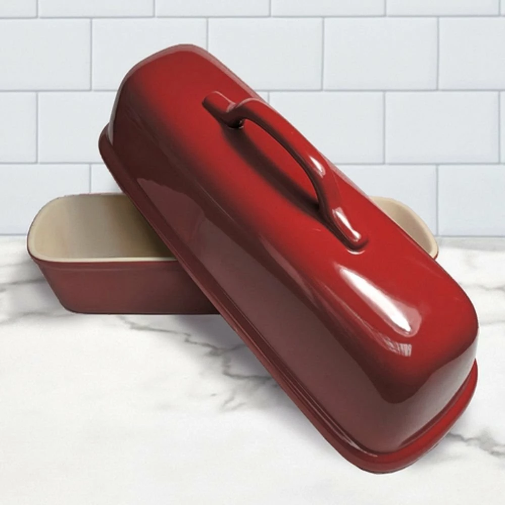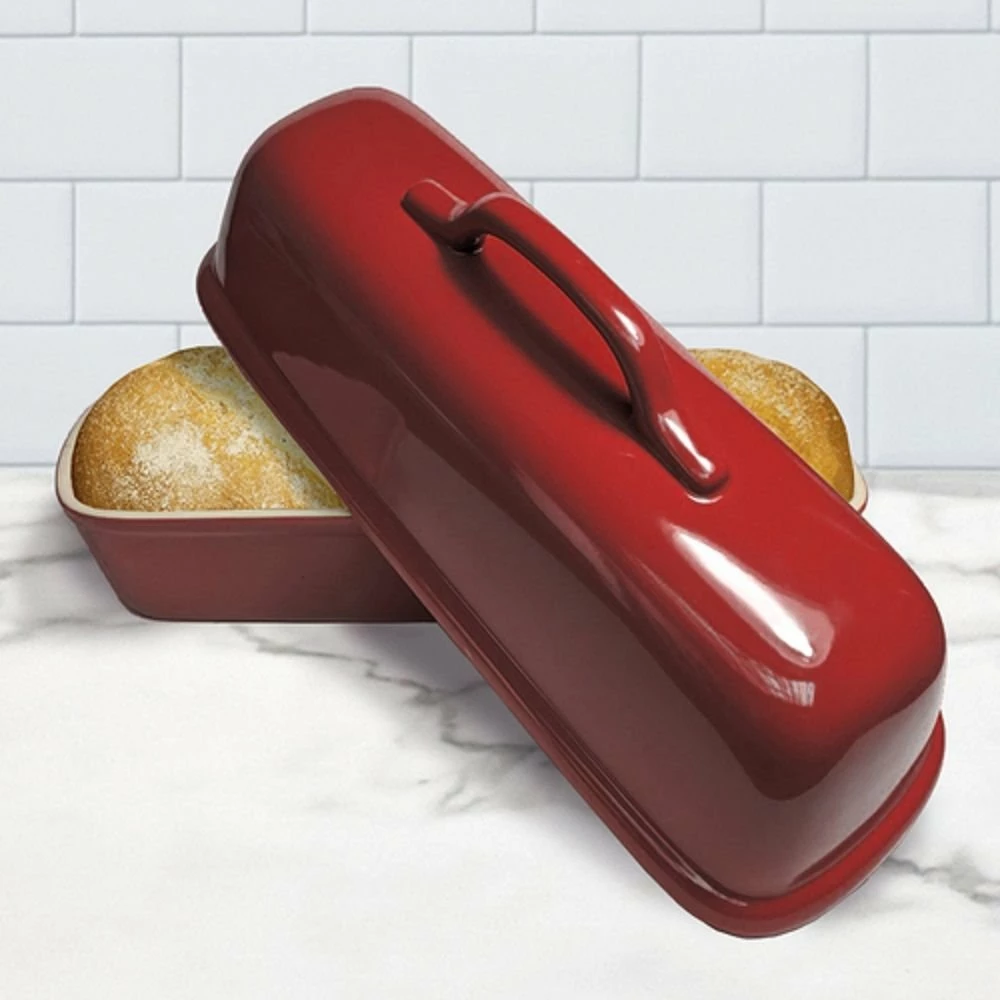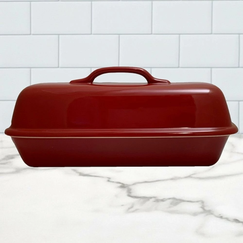 There’s nothing like bakery bread, cooked in a professional brick-lined oven. Wish you could bake a crusty artisan loaf that good? You can with the Superstone Covered Bread Baker! This loaf pan has an unglazed interior that pulls moisture from the dough, vital for creating that crackly crust you’re looking for, while the dome mimics the heat conditions of a professional brick oven. The result is a perfectly crusty loaf of Italian bread with a light, airy interior. The red-glazed exterior is just icing on the cake, bringing a beautiful pop of color into your kitchen. If you want to make homemade bread so tasty you can win a bake-off against a professional baker, you need the Superstone Covered Bread Baker as your secret weapon!