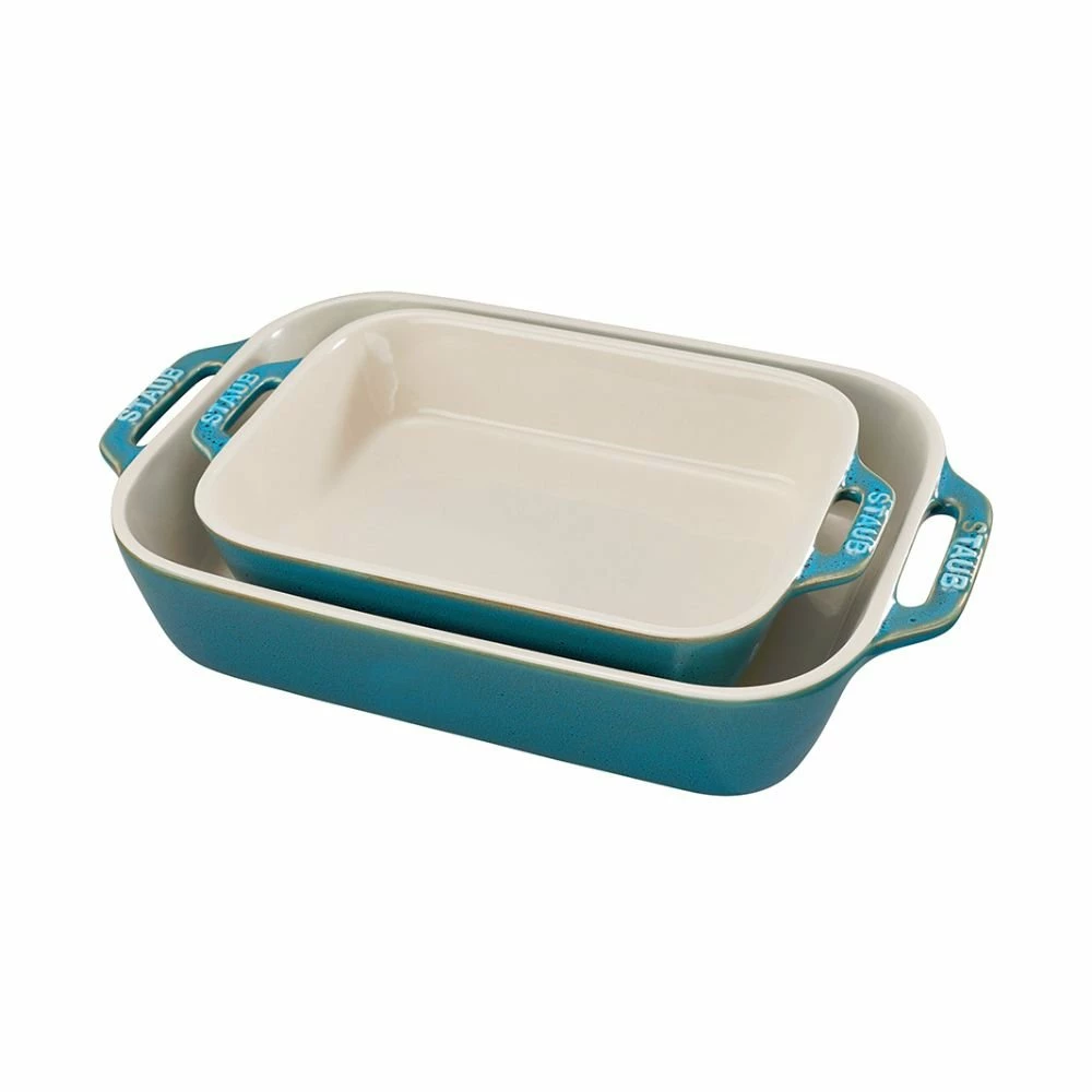 Staub 2pc Rectangular Baking Dishes (Rustic Turquoise) Features: