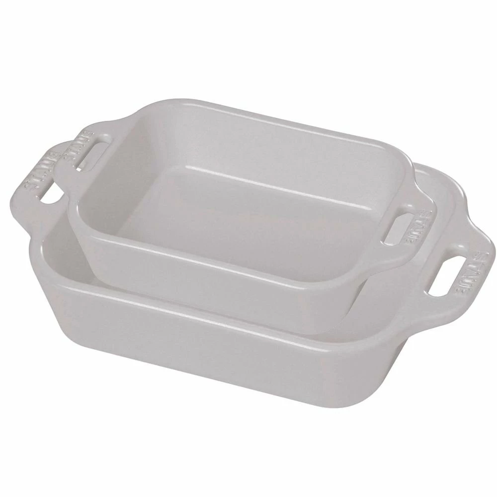 Bake classic lasagnas, casseroles, desserts, and more with Staub’s 2pc Rectangular Baking Dishes in White! These baking pans are designed with glass porcelain for even heating material that will resist scratches and stains. The beautiful white glaze makes it ideal for serving from the table and is also freezer safe, which reduces the need to transfer the food to different platters and containers. Staub’s 2pc White Rectangular Baking Dishes are the perfect accessory to reduce cleanup and storage, so you can spend more time enjoying the delicious homemade meal!