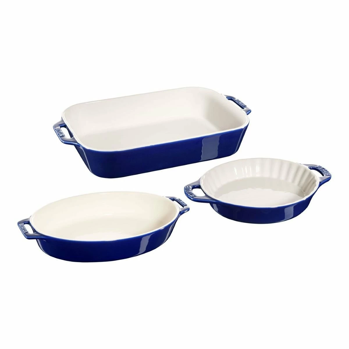 Staub 3-Piece Mixed Baking Dish Set (Dark Blue) Features: