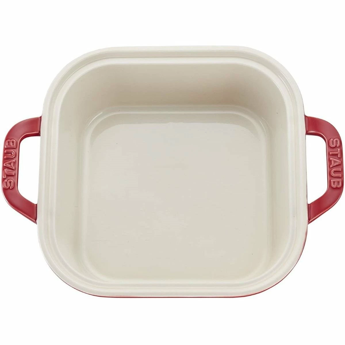 Gooey baked macaroni and cheese, soft delicate bread, perfectly baked vegetables and more require a proper baking dish. The 9″ x 9″ Square Covered Baking Dish in stylish Cherry from world-renowned bakeware manufacturer Staub is everything you need to make all your favorite baked dishes quickly and easily! Made of durable, high-quality stoneware ceramics, this Staub dish features a scratch- and impact-resistant vitreous glass porcelain-enamel finish. This beautiful Cherry red finish makes the dish great for serving as well as baking! The enameled glaze also resists moisture absorption, aiding in proper baking and avoiding drying out your food. The stoneware material ensures proper heat distribution and retention for even baking. Never worry about undercooked food! The dish features easy-to-use rung handles making transportation in and out of the oven easy! This baking dish is freezer, microwave, broiler and oven safe up to 572°F. So not only is it perfect for baking, but also storing and then re-heating leftovers. And when you’ve eaten the last few delicious bite, cleanup is easy because the dish is dishwasher safe. Why settle for less-than-satisfactory baking dishes? Know you can trust your bakeware! Order your very own Cherry Staub 9″ x 9″ Square Covered Baking Dish today!