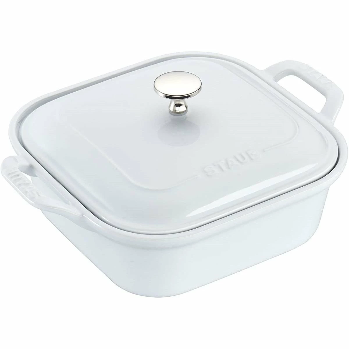 Gooey baked macaroni and cheese, soft delicate bread, perfectly baked vegetables and more require a proper baking dish. The 9″ x 9″ Square Covered Baking Dish in stylish White from world-renowned bakeware manufacturer Staub is everything you need to make all your favorite baked dishes quickly and easily! Made of durable, high-quality stoneware ceramics, this Staub dish features a scratch- and impact-resistant vitreous glass porcelain-enamel finish. This beautiful, classic White finish makes the dish great for serving as well as baking! The enameled glaze also resists moisture absorption, aiding in proper baking and avoiding drying out your food. The stoneware material ensures proper heat distribution and retention for even baking. Never worry about undercooked food! The dish features easy-to-use rung handles making transportation in and out of the oven easy! This baking dish is freezer, microwave, broiler and oven safe up to 572°F. So not only is it perfect for baking, but also storing and then re-heating leftovers. And when you’ve eaten the last few delicious bite, cleanup is easy because the dish is dishwasher safe. Why settle for less-than-satisfactory baking dishes? Know you can trust your bakeware! Order your very own White Staub 9″ x 9″ Square Covered Baking Dish today!