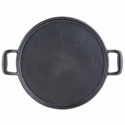 Whether a crispy thin crust is your kind of pizza or not, kick your pizza-baking results up a notch with the heavy Cast Iron Pizza Pan with Handles from TableCraft! The pan arrives pre-seasoned and the naturally non-stick solid cast iron surface retains heat at high temperatures so your pizza crust gets a great direct-contact bake. Useful for more than just pizza, the durable cast iron makes a great baking surface for artisan breads and can even take direct heat for use on the grill or over the campfire. The pan’s extended handles provide a sturdy grip without having to support the hot pan from below as with a traditional pizza pan. Hand wash only.