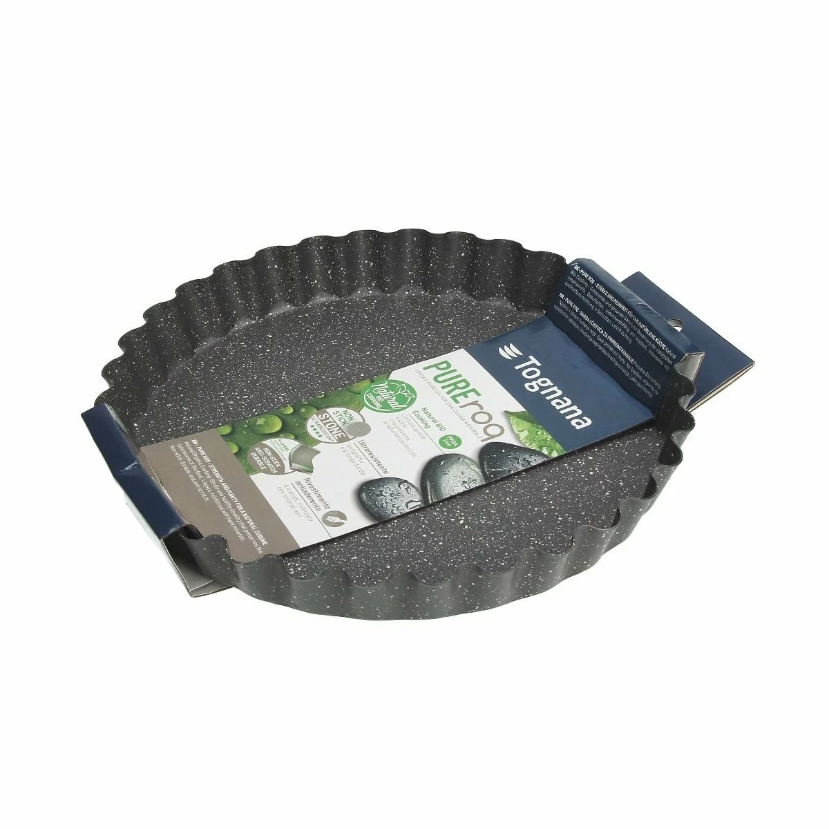 Bake a beautiful homemade fruit tart or a savory bacon & cheese quiche with the Tognana 11” Tart Pan. The PURE ROQ Collection features high-quality bakeware crafted of four layers of aluminum that’s been reinforced with hard minerals for an intensely durable piece that’ll provide even heat distribution for consistent results. With a nonstick internal and exterior coating for easy food release, this 11″ pan is warp and scratch-resistant, making it safe for use with metal utensils and perfect for everyday use. Plus, it’s dishwasher-safe for easy cleaning. From tarts and pies to quiches and fruit pizzas, the Tognana PURE ROQ 11” Tart Pan will help you make beautiful dishes perfect for any occasion!