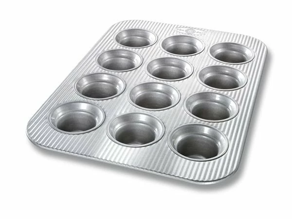 Bake up some blueberry, mixed fruit or cornbread muffins with the USA Pan 12 Cup Crown Pan! The pan has will bake your muffins with a beautiful crown muffin top.This muffin pan is made with a patented AMERICOAT Plus coating, a non-stick silicone, which allows for easy release and the fluted panel design promotes air circulation and maximizes pan strength to help resist warping. Create beautiful blueberry, or banana muffins and more with the USA Pan 12 Cup Crown Muffin Pan!