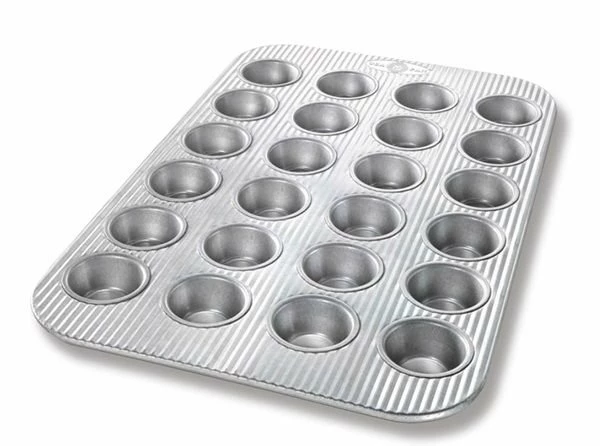 Bake up mini marvels for your next dinner party with the USA Pan 24 Cup Mini Muffin Pan! With having 24 cups, you’ll be able to feed a crowd! The pan has a fluted pan design to help with air circulation so your goodies are baked evenly and maximized pan strength to help resist warping. This mini muffin pan is coated with AMERICOAT Plus, a non-stick silicone, which allows you to easily remove your mini treats. The possibilities are endless to what you can make in the USA Pan 24 Cup Mini Muffin Pan!