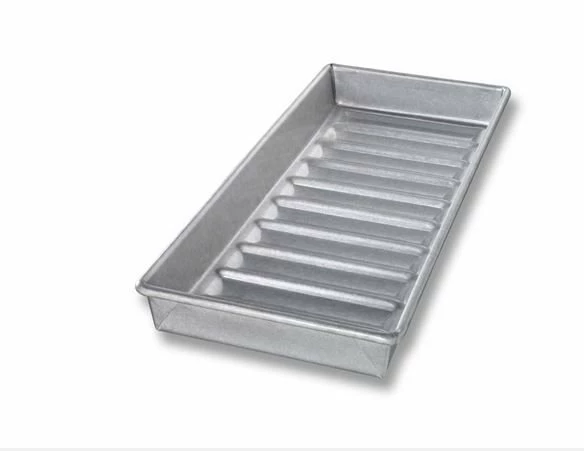 Bake delicious New England Style hot dog rolls and lobster rolls at home with USA Pan’s New England Hot Dog Bun Pan! The surface of the pan features AMERICOAT® Plus coating, a non-stick silicone that will allow you to easily release your rolls from the pan. Made with the same standard high-performance features used for bakeware in commercial kitchen, your freshly-baked rolls are sure to turn out perfectly! This smartly designed pan is the perfect thing for bakers who love lobster, clam, or scallop rolls and want to be able to make their own fresh rolls anytime they want, or for gluten-free or special-recipe bakers. With a toasted, buttery outside and a soft, rich inside, New England Hot Dog Rolls are also a dream for an artisanal hot dog connoisseur. Wow the guests at your next BBQ with your own fresh-baked buns!